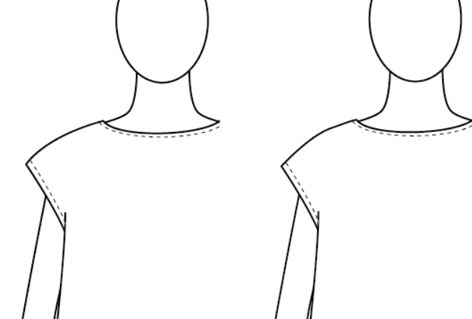 基本的にドロップの場合はセットインのように肩の位置を示すなんて役割も必要もなく、どちらかというとショルダーポイントは目立たないよう、切替のように自然になだらかに見せたいです。